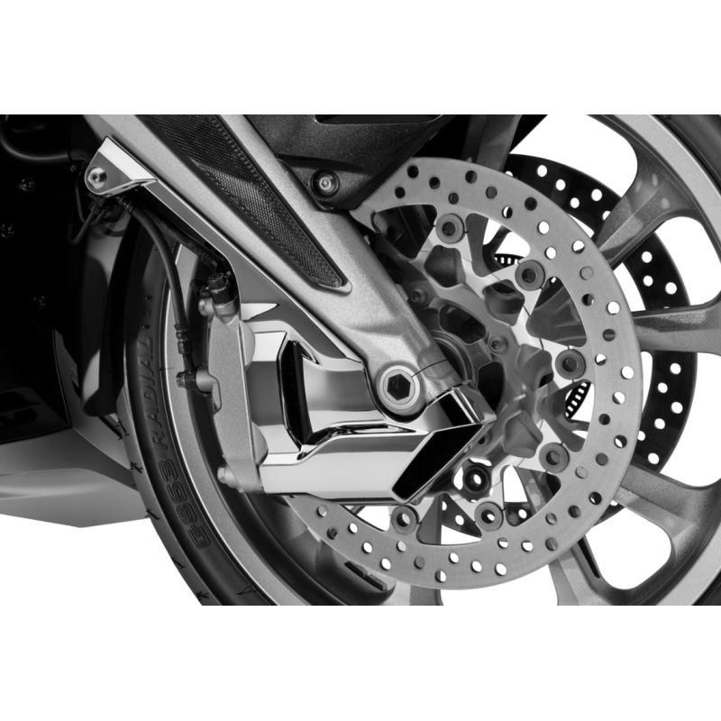Jeu d'enjoliveurs chromés pour étriers de frein avant, améliorant le flux d'air refroidissant l'étrier.
